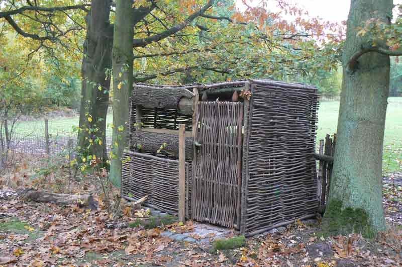 observatiehut met rechts het doorzicht van binnenuit de hut op het landschap :
