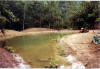 in een privaat bosbestand te Veerle-Heide : zitmuur in porfierkassei met