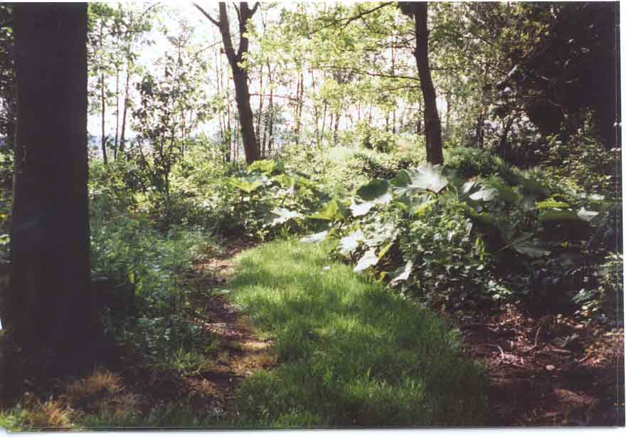pilasters ijzerzandsteen als overgang tuin naar bosgedeelte